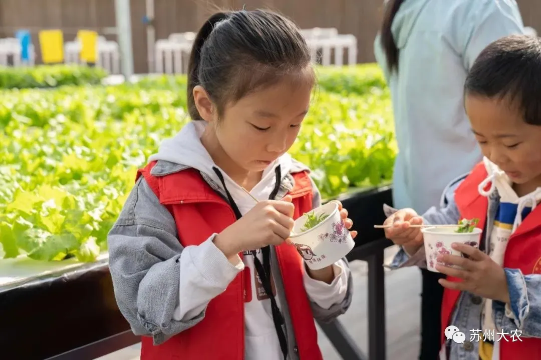 走進(jìn)生長旺盛的蔬菜區(qū)親手采摘,從育苗、移栽、采收都不落下。端詳著剛剛從自己手中的種子變成可以收獲的蔬菜,孩子們明白了家鄉(xiāng)現(xiàn)代農(nóng)業(yè)的真正神奇力量。